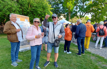 Vandrerne med korpset i spissen ankommer siste stopp, MøV sin stand i Heilmannparken. Her står mannskap fra Morsa klar med velsmakende akevitt og Mosseølets Venner er klare med vel avkjølt og fintskummende Kong Carl Sommerøl.